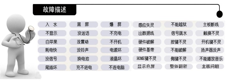 专注iphone软件,硬件维修,维修工程师有10多年以上的硬件维修经验且均受过专业的电子电路培训,iphone4,4S,iphone5 iphone5S iphone6 iphone6S iphone6P iphone 6SP电路均以破解,精通iphone4,4S,iphone5摔坏进水,不开机,刷机报错1600.1601.1602.1618.9.-1.等报错维修,无wifi,无信号,无基带IMEI,无铃声,无送话,无听筒,不充电,开机反复重启,开机定屏,无限DFU,漏电发热,不联机,不显示,触摸失灵,不照相,刷机后无法激活,iphone4S激活时提示“您的iphone有问题”,等软硬件故障完美修复,长期承接同行iphone维修。